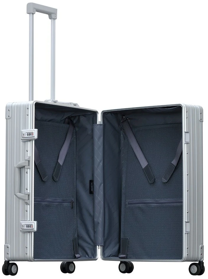 Aleon Aluminum luggage 26″ traveler adds a new dimension to your travels! It has dual spinner wheels for smooth rolling in any direction. Heavy duty drawbolts make opening and closing quick and convenient. There is a built-in combination lock on the Aleon Aluminum 26″ traveler luggage that is TSA approved with the airlines. Engineered and built for traveling ease, it is made of heat tempered aircraft grade aluminum! The Aleon Aluminum 26″ traveler luggage has a rubber gasket so the contents are moisture and dust free. The interior is divided for efficient packing and there are zippered pockets for small items. We include FREE shipping and a FREE leather luggage tag monogrammed with your initials for instant identification of your Aleon Aluminum 26″ traveler wherever you journey!