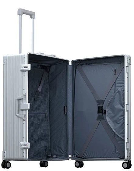 Fabulous for traditional longer trips, the Aleon Aluminum 30″ luggage Macro traveler with suiter is the way to go! Made like a traditional suitcase, but with the modern features you want, this Aleon Aluminum 30″ Marco traveler luggage with suiter gets you there in style. It packs easily and the suiter section will hold your clothing on your own hangers practically wrinkle free. Aleon Aluminum 30″ Marco traveler with suiter luggage has a rubber gasket to keep the interior soil, dust and moisture free. The heavy duty draw-bolts have TSA approved combination locks and the dual spinner wheels allow for easy rolling in any direction! We include FREE shipping and a FREE leather luggage tag with your initials monogrammed for easy identification of your fabulous Aleon aluminum 30″ Marco traveler with suiter wherever you travel!