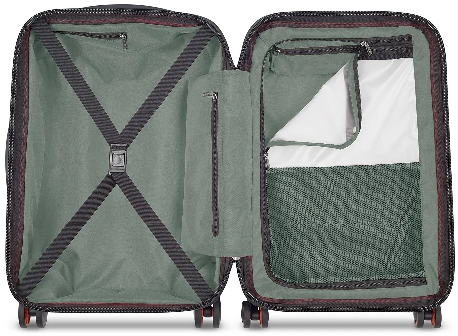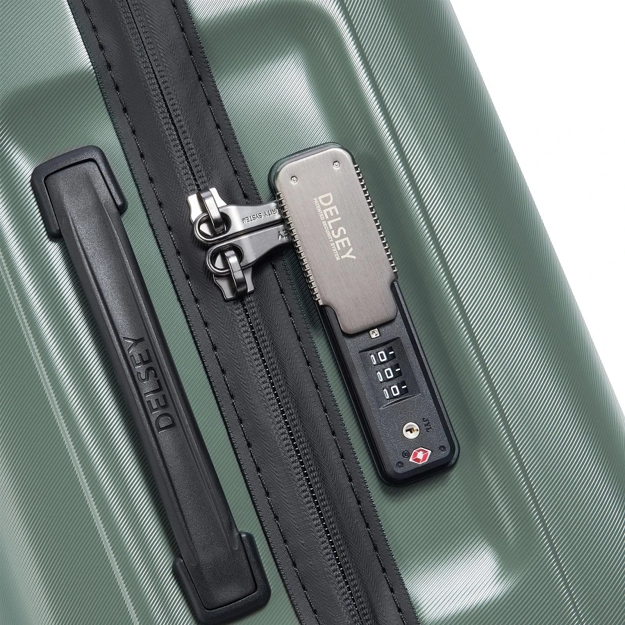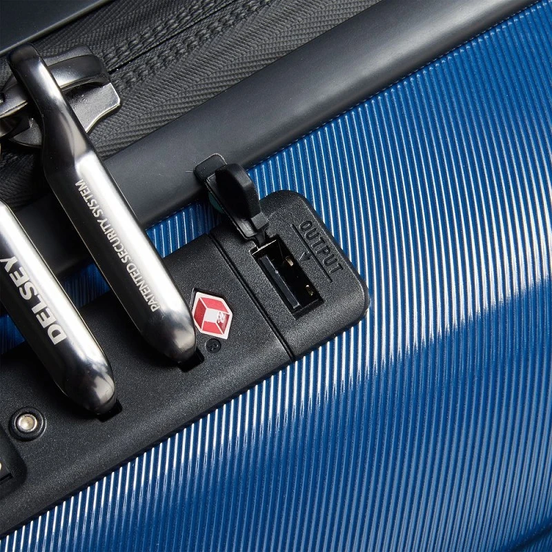 - Delsey 100% Polycarbonate textured shell provides a lightweight, durable, scratch-resistant, high-impact enclosure