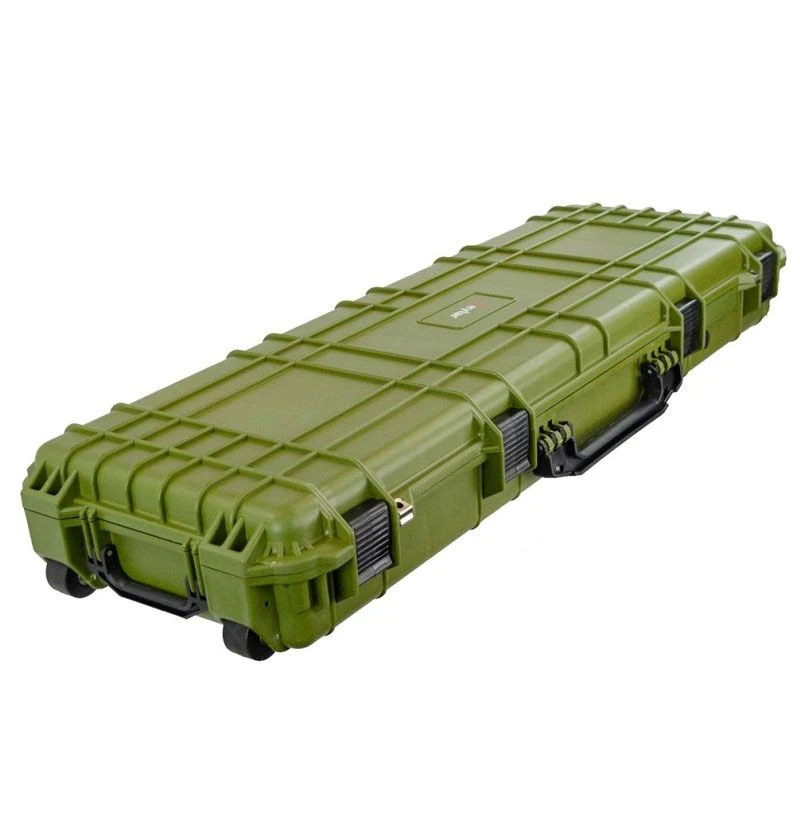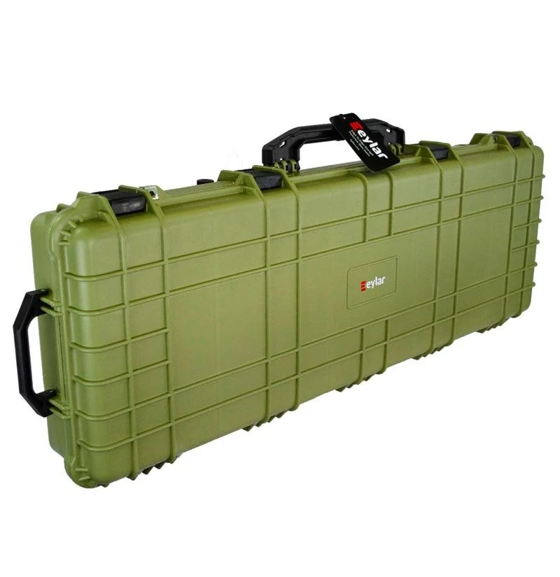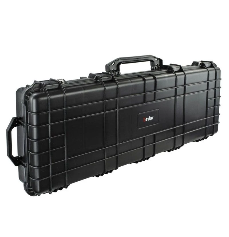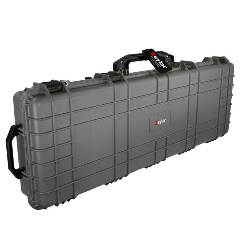 The Eylar 48 inch Tactical Rifle Case with Pick and Pluck Foam interior is designed to secure up to two rifles or combination with optics and gear. This hard shell case Injection molded from reinforced high-pressure polypropylene plastic that is water resistant and crushproof. Built to mil-spec standards, these roller cases are ideal for securely protecting AR rifles, and meet TSA requirements for transporting firearms.