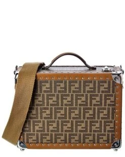 - FF Motif Rigid Small Leather Travel Trunk in brown FF motif leather and silver-tone hardware with stud embellishments