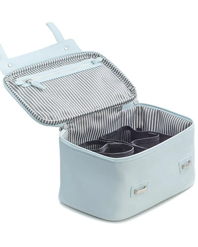 - Design details: 3 removable compartments, elastic loops, zippered compartment, nylon lining, zipper closure