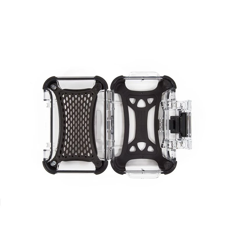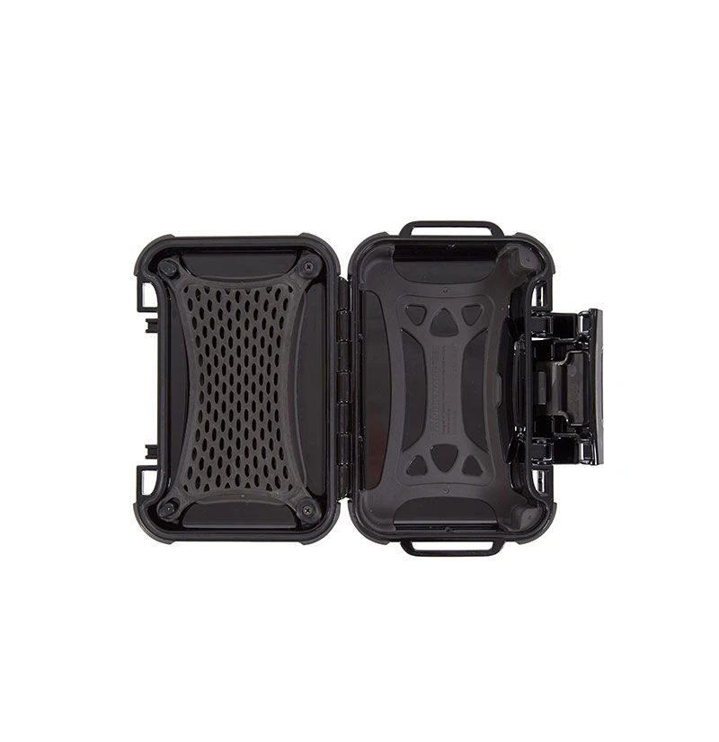 The exterior features Santoprene rubber bumpers that provide added grip on wet surfaces and prevent scratches on delicate finishes. It’s compact design, it offers 5.9 x 3.3 x 1.5 inches of interior space. The interior has a rubberized bottom helps shield items from shocks and bumps and a protective webbing makes organizing the contents of your case simple.