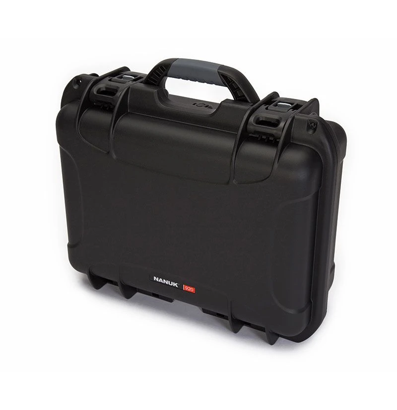 The Nanuk 920 Medium Case is waterproof, crushproof and shockproof. This ultra-durable case has many features including an impenetrable tough resin shell and side mounted PowerClaw latching system. An integrated lid stay prevents the lid from closing while you are accessing your equipment. The 920 case has a molded-in bezel system, an automatic pressure valve, stainless steel hardware and two padlockable hasps molded directly into case. A large, folding, soft grip handle makes transporting effortless. Grooves on the front interlock with built-in feet at the base when stacking multiple cases of the same size.