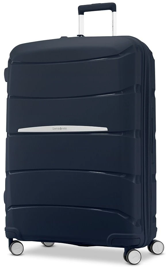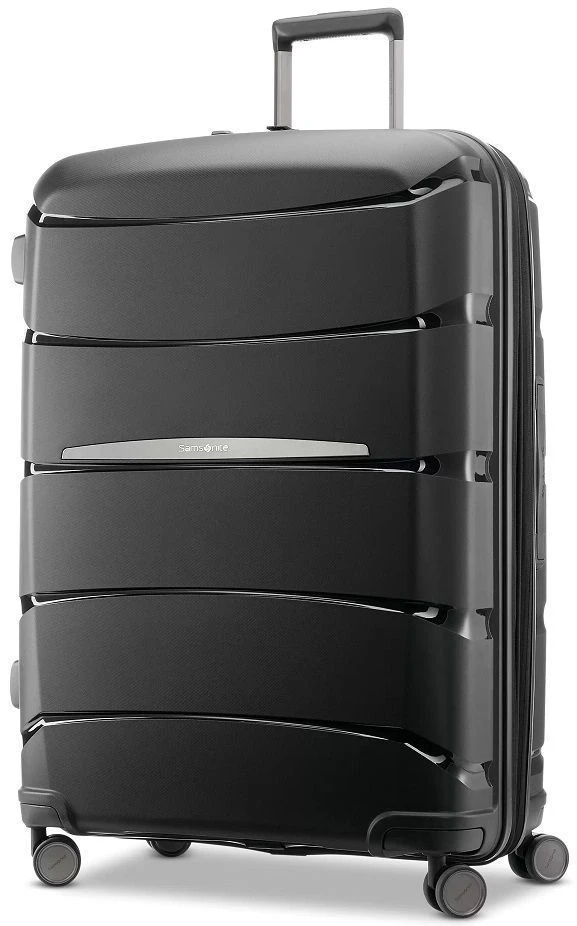 Business or leisure, you will enjoy longer journeys with the Samsonite Outline Pro large spinner luggage! Built for your traveling ease, it has a built-in TSA approved combination lock. The book opening design gives you two separate packing compartments and the panel will compress to maximize your interior space. Plus, the interior is made of 100% recycled plastic bottles. Need more room and easily expand the Samsonite Outline Pro large spinner luggage. The custom dual spinner wheels allow you to easily move the bag along in any direction and it has antimicrobial technology on the handles to suppress the growth of bacteria. This is the way to travel! We include FREE shipping and a FREE leather luggage tag monogrammed with your initials for easy identification of your fabulous Samsonite Outline Pro large spinner wherever you travel!