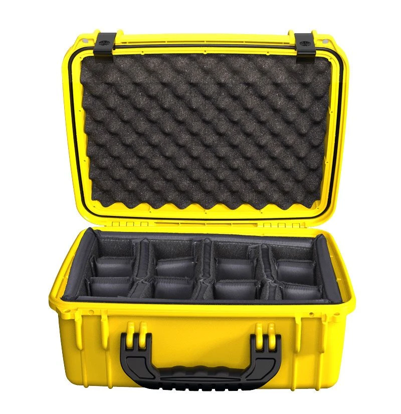 The case interior has custom fit convolute foam lid and adjustable padded divider sets. Heavy duty removable and repositionable padded dividers allow for any custom configuration needed to protect and organize your valuable equipment. Compartments provide 360° protection.