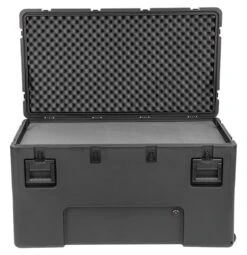 Roto Military Standard Waterproof Case features rugged duty case shell is UV, solvent, corrosion and fungus resistant – making it a great solution for long-term protection for equipment in transit. The exterior of these SKB 3R cases are accompanied by black powder coated stainless steel hardware to prevent rusting and comfortable spring loaded rubber over-molded handles make for easy transport and shipping for these tough industrial and military standard utility cases.