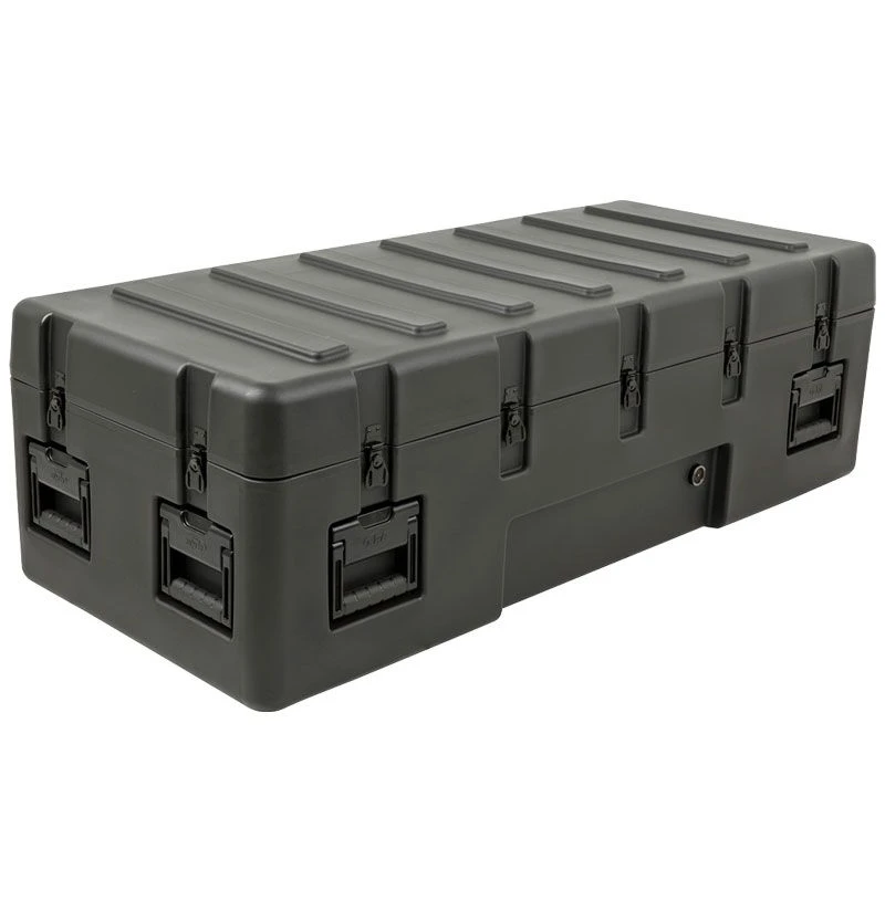 Roto Military Standard Waterproof Case features rugged duty case shell is UV, solvent, corrosion and fungus resistant – making it a great solution for long-term protection for equipment in transit. The exterior of these SKB 3R cases are accompanied by black powder coated stainless steel hardware to prevent rusting and comfortable spring loaded rubber over-molded handles make for easy transport and shipping for these tough industrial and military standard utility cases.