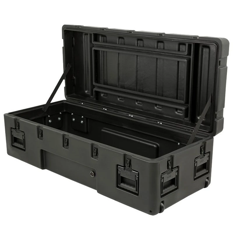 SKB‘s 3R Series cases are built with superior rotationally molded strength and ergonomic design, and feature an impenetrable, yet lightweight LLDPE shell for maximum impact resistance to withstand levels of punishment in excess of all ATA and military shipping specifications Mil-Std-810 and MIl-C4150J.