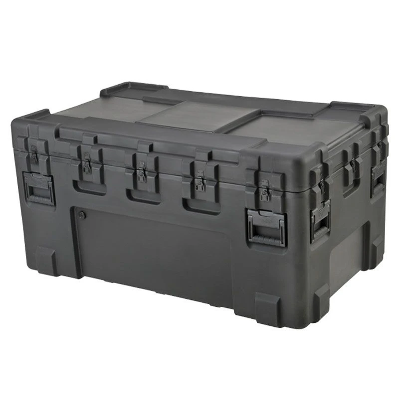 Roto Military Standard Waterproof Case features rugged duty case shell is UV, solvent, corrosion and fungus resistant – making it a great solution for long-term protection for equipment in transit. The exterior of these SKB 3R cases are accompanied by black powder coated stainless steel hardware to prevent rusting and comfortable spring loaded rubber over-molded handles make for easy transport and shipping for these tough industrial and military standard utility cases.