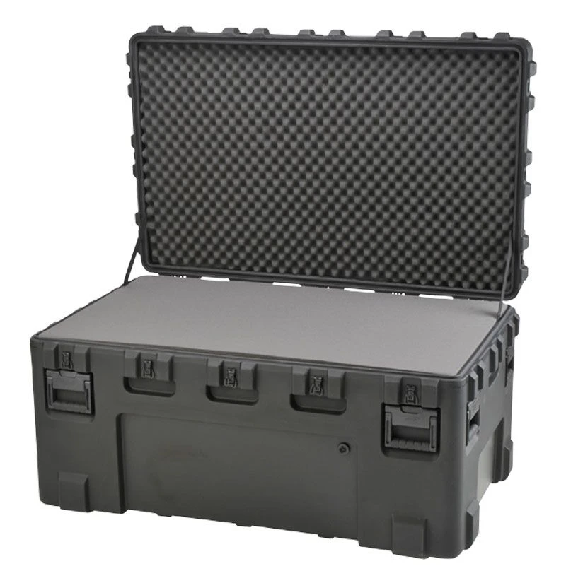 SKB‘s 3R Series cases are built with superior rotationally molded strength and ergonomic design, and feature an impenetrable, yet lightweight LLDPE shell for maximum impact resistance to withstand levels of punishment in excess of all ATA and military shipping specifications Mil-Std-810 and MIl-C4150J.