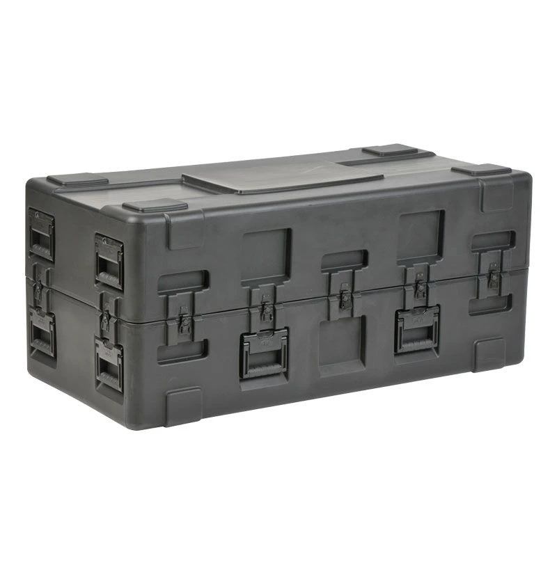 Roto Military Standard Waterproof Case features rugged duty case shell is UV, solvent, corrosion and fungus resistant – making it a great solution for long-term protection for equipment in transit. The exterior of these SKB 3R cases are accompanied by black powder coated stainless steel hardware to prevent rusting and comfortable spring loaded rubber over-molded handles make for easy transport and shipping for these tough industrial and military standard utility cases.