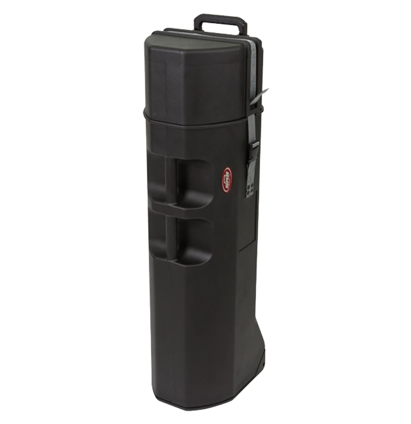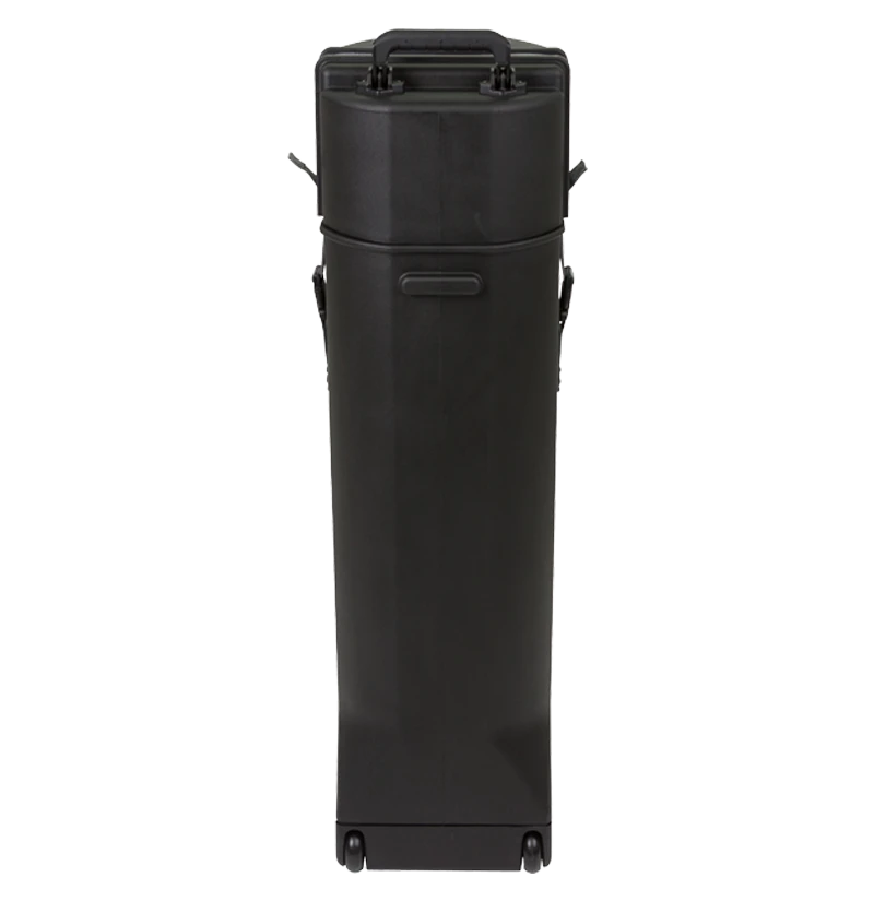 Roto molded of rugged Linear Low Density Polyethylene, this case is designed with internal foam in the base and lid to keep equipment secure and protected. The case has internal dimension of 41″ tall with a diameter of 11″, and features a removable top for easy accessibility, a sturdy, high-tension slide release buckle with heavy-duty web straps for easy closure, room on both sides to adhere shipping labels, two molded-in ergonomic carrying handles and in-line skate style wheels. This case comes with SKB‘s Unconditional Lifetime Warranty.