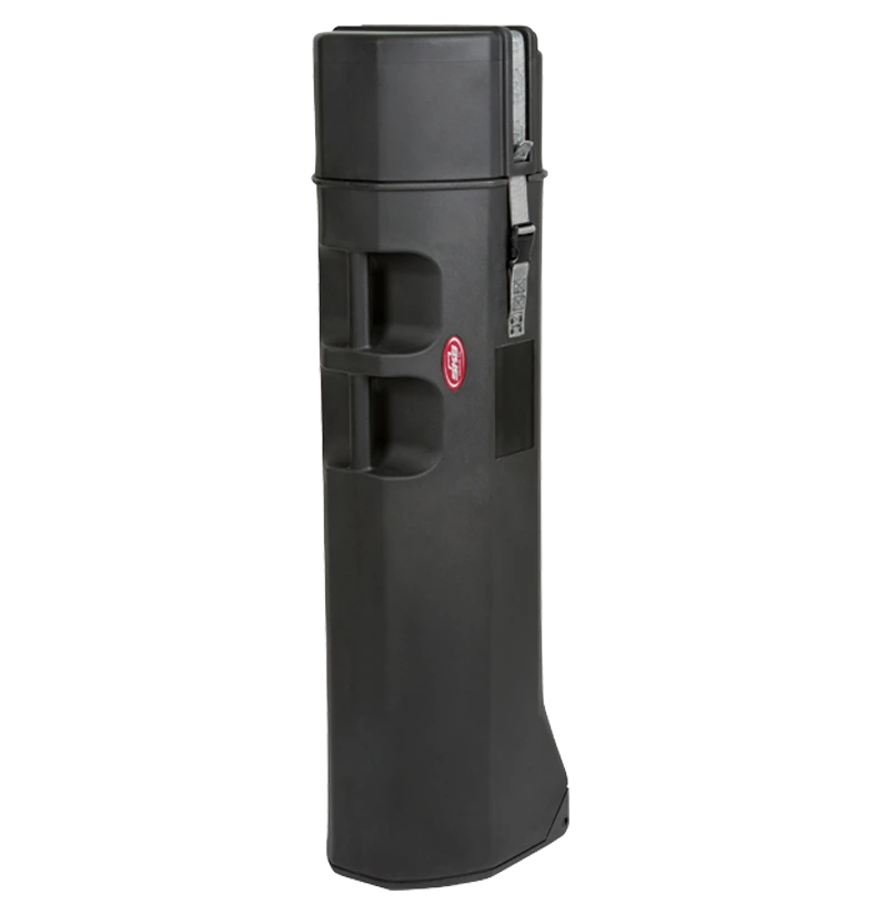 Roto molded of rugged Linear Low Density Polyethylene, this case is designed with internal foam in the base and lid to keep equipment secure and protected. The case has internal dimension of 46″ tall with a diameter of 11″, and features a removable top for easy accessibility, a sturdy, high-tension slide release buckle with heavy-duty web straps for easy closure, room on both sides to adhere shipping labels, two molded-in ergonomic carrying handles and in-line skate style wheels. This case comes with SKB‘s Unconditional Lifetime Warranty.