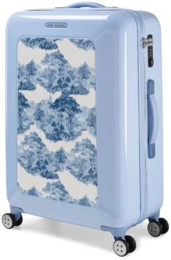 Travel beautifully with the chic Ted Baker Take Flight Landscape medium hardside spinner luggage! Very lightweight at just 8 pounds, you can pack it up for a week or more and travel in style. The Ted Baker Take Flight Landscape medium hardside spinner luggage has a built-in TSA approved combination lock and inverted zippers for your traveling convenience. With dual spinner wheels, you can easily glide the Ted Baker Take Flight Landscape medium hardside luggage in any direction and beside you as you rush to your destination. It comes with a clear, water resistant cover for traveling protection. You’ll enjoy the packing ease with the book opening design and the double compartments with small pockets for smaller items. We include FREE shipping and a FREE leather luggage tag so everyone will know this elegant Ted Baker Take Flight Landscape medium hardside spinner is yours!