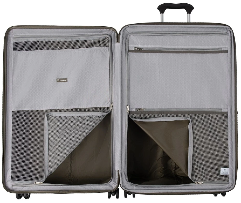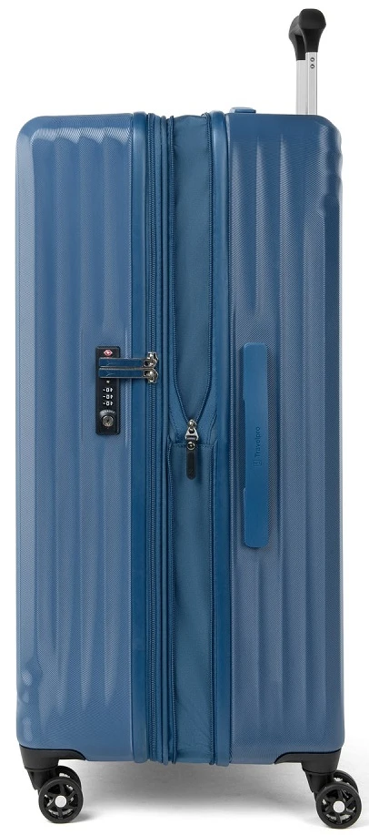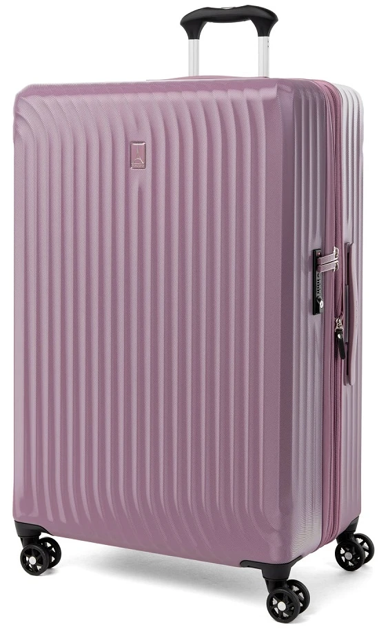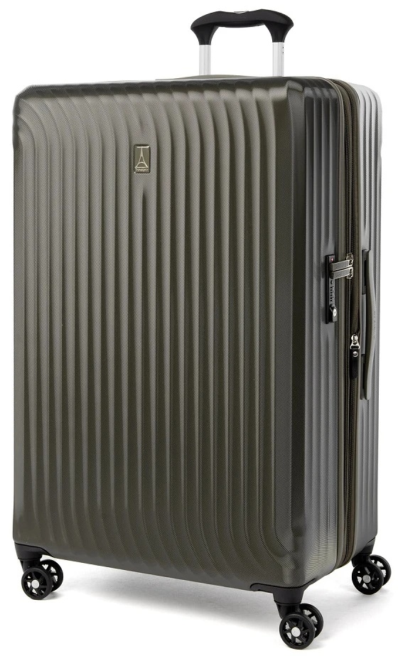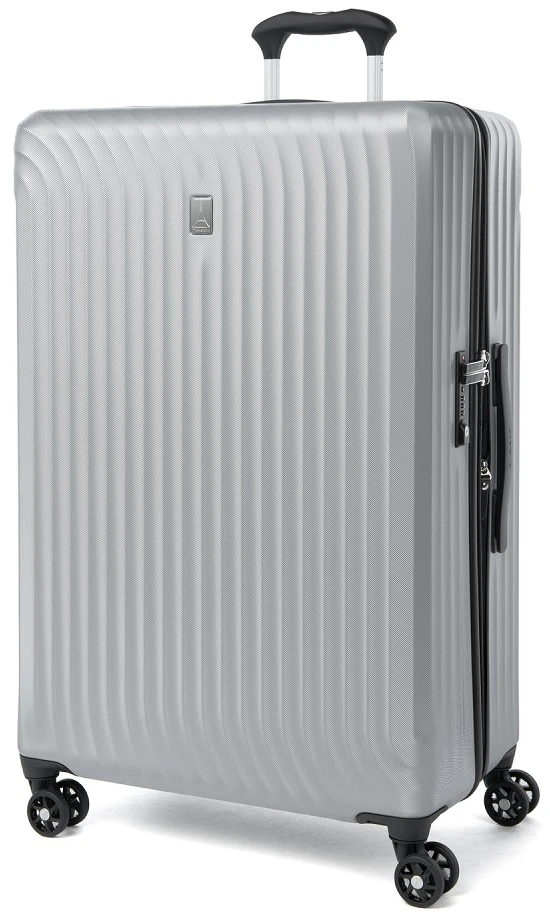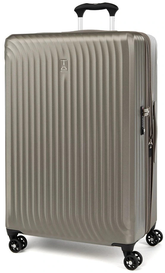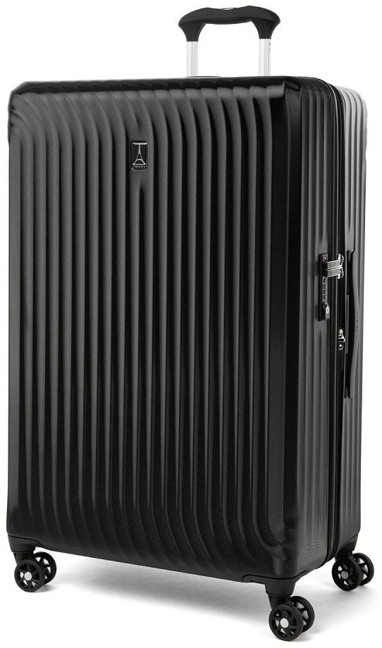 Go away for two weeks or longer with the Travelpro Maxlite Air Large check in expandable hardside luggage. It is designed for your traveling ease with dual spinner wheels. Easily glide the Travelpro Maxlite Air large check-in expandable hardside luggage right along beside you and in any direction as you go to your destination. It has a built-in TSA approved combination lock too! The interior is fully lined in 100% post consumer plastic bottles! The book opening design makes packing and unpacking efficient. The Travelpro Maxlite Air large check-in expandable hardside luggage has two compartments to separate your packiing and smaller zippered pockets for smaller items! Enjoy long trips with the Travelpro Maxlite air large check in expandable hardside luggage. We include FREE shipping and a FREE leather luggage tag monogrammed with your own initials for easy identification wherever you travel!