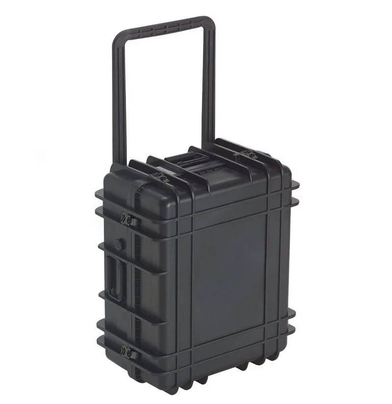 Tough injection-molded wheeled case is designed with rigid reinforced walls to give maximum protection for even the most sensitive equipment. The extendable handle and 2 in. wheels make maneuvering with heavy loads easy. The case features three metal spring-loaded handles and stainless steel twist-lock latches. A waterproof, dustproof O-ring seal protects valuable contents including instrumentation, sales presentation packages, test equipment, photographic equipment, and other delicate items.