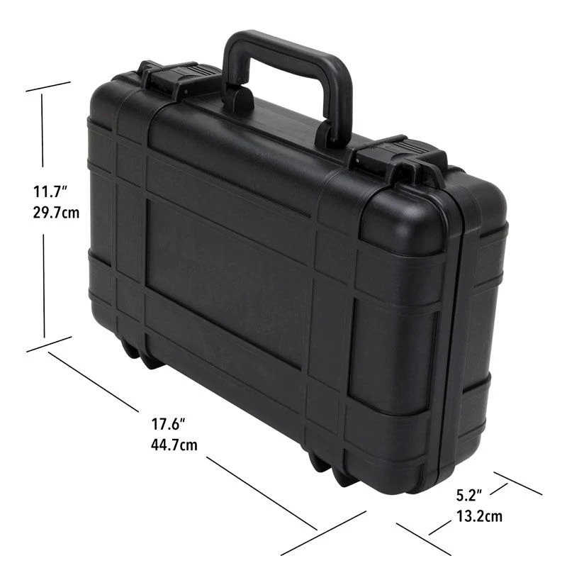 These tough injection moulded O-ring sealed, Pelican style carrying cases protect contents from dust and water. Dual function latches hold the lid tightly closed and equalize pressure when released for easy opening. Many options make this hard protective carrying case adaptable to most applications. Available without foam, with foam, and panel ring interior. Choice of ABS or Polypropylene construction. In ABS cases, the main o-ring is made from hollow silicone rubber tubing which is chemically resistant and retains its shape with age; polypropylene cases feature a Neoprene rubber o-ring which provides an excellent seal. When you need to carry your equipment safely and securely, grab an UltraCase and go. This shipping and storage case is proudly made in the USA.