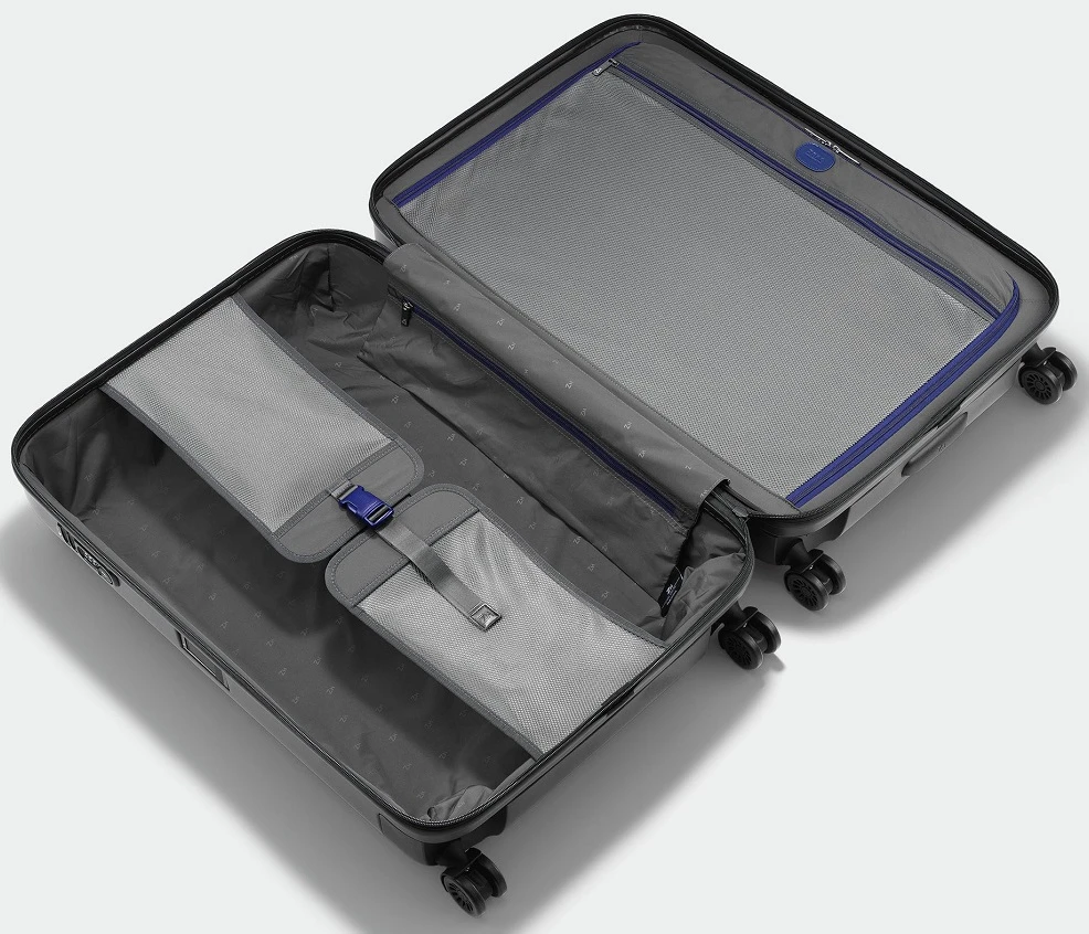 Plan a cruise or long trip with the Zero Halliburton Edge large case luggage! You can glide it along easily on the rubber lined spinner wheels! The Zero Halliburton Edge large luggage opens like a book and has a hanger clip inside for packing and unpacking ease. You can hang your clothing on your own hangers! Made of matte polycarbonate, it is lightweight and scratch resistant and built to travel near and far. We include FREE shipping and a FREE leather luggage tag monogrammed exclusively for you with your initials for easy identification everywhere you travel!